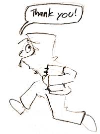 And there you have it! Bookkeeper is mildly amused at how the question marks over the Mysterious Person and the Thingy's heads make them look confused.